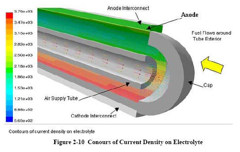 The National Energy Technology Laboratory (NETL) developed a 3-dimensional computational fluid dynamics (CFD) model to allow stack developers to reduce time-consuming build-and-test efforts. As opposed to systems models, 3-dimensional CFD models can address critical issues such as temperature profiles and fuel utilization; important considerations in fuel cell development. CFD analysis computes local fluid velocity, pressure, and temperature throughout the region of interest for problems with complex geometries and boundary conditions. By coupling the CFDpredicted fluid flow behavior with the electrochemistry and accompanying thermodynamics, detailed predictions are possible. Improved knowledge of temperature and flow conditions at all points in the fuel cell lead to improved design and performance of the unit.