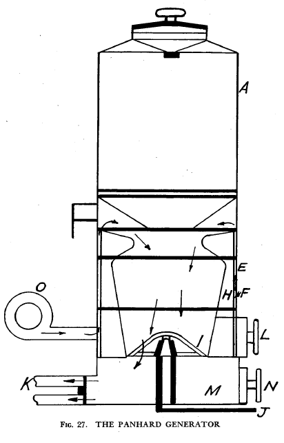 FIG. 27 shows the Panhard generator, which is of the down-draught type.